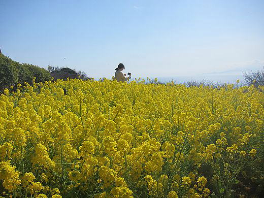 ★春の陽射しにキラキラ光る海と鮮やかな黄色の菜の花が眩しくきれいでした。